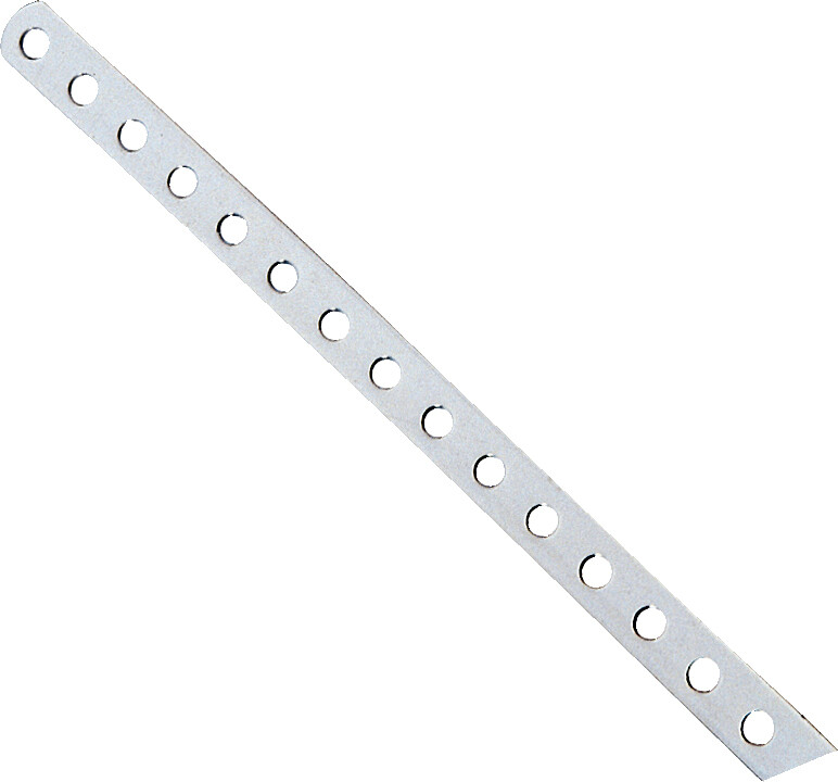 Praktiske hullskinner i rustfritt stål. Totallengde 915 mm.