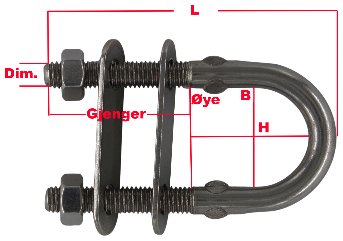 U-bolt i syrefast stål 316 fra 1852.