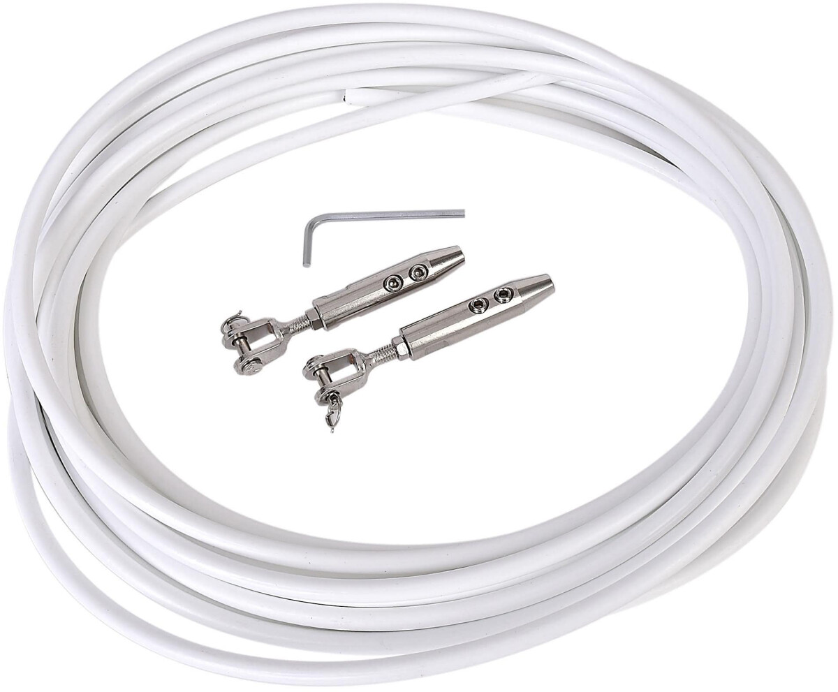 Ferdig sett for gjør-det-selv- montering av rekkewire. Inneholder 10 m plastbelagt wire 4/6 mm og terminaler som kan monteres selv.