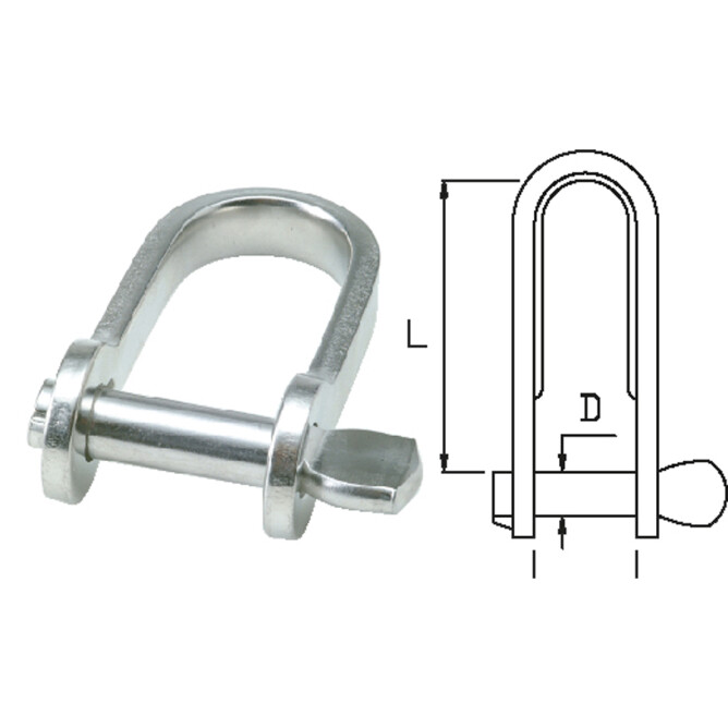 Sjakkel i rustfritt stål med nøkkelbolt. Rask å åpne/stenge. Bolten sitter fast i bøylen.