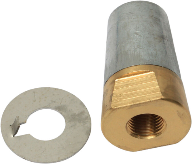 Kommer i flere størrelser fra 25 mm (ØA). Leveres komplett med låseskive og utskiftbar sinkanode.Se tilhørende fil under eller i bildegalleriet for målskisser med komplette mål.