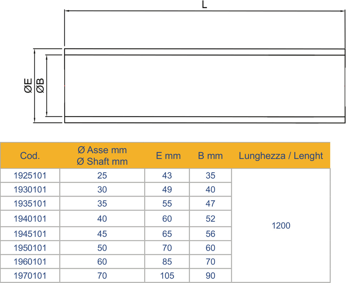 Utvendig akselrør uten lager 1200 mm