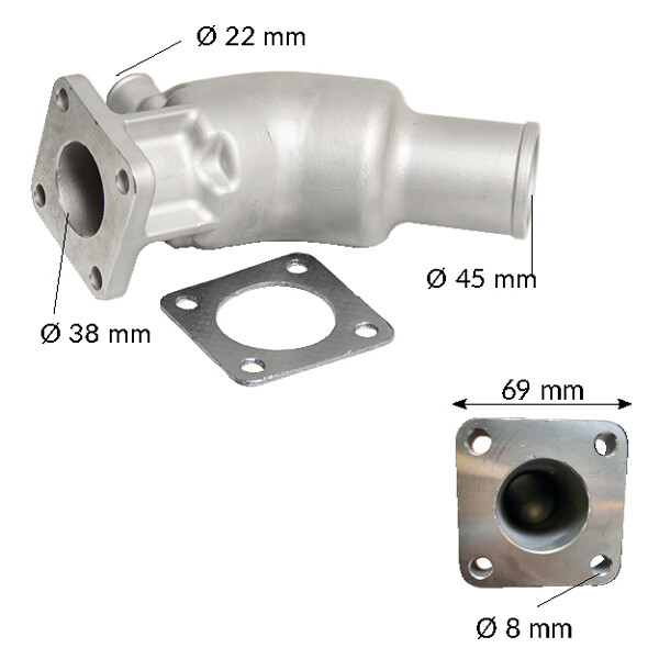 Eksosbend i støpt syrefast stål AISI 316. Eksosbendet leveres med pakning.