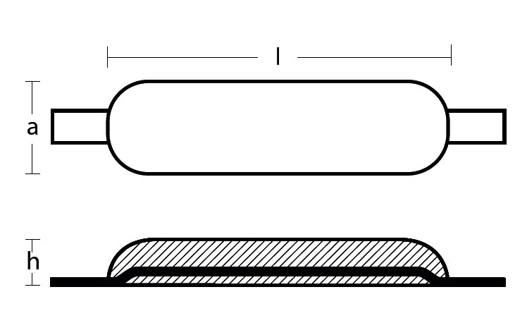 Oval sinkanode som må sveises på.