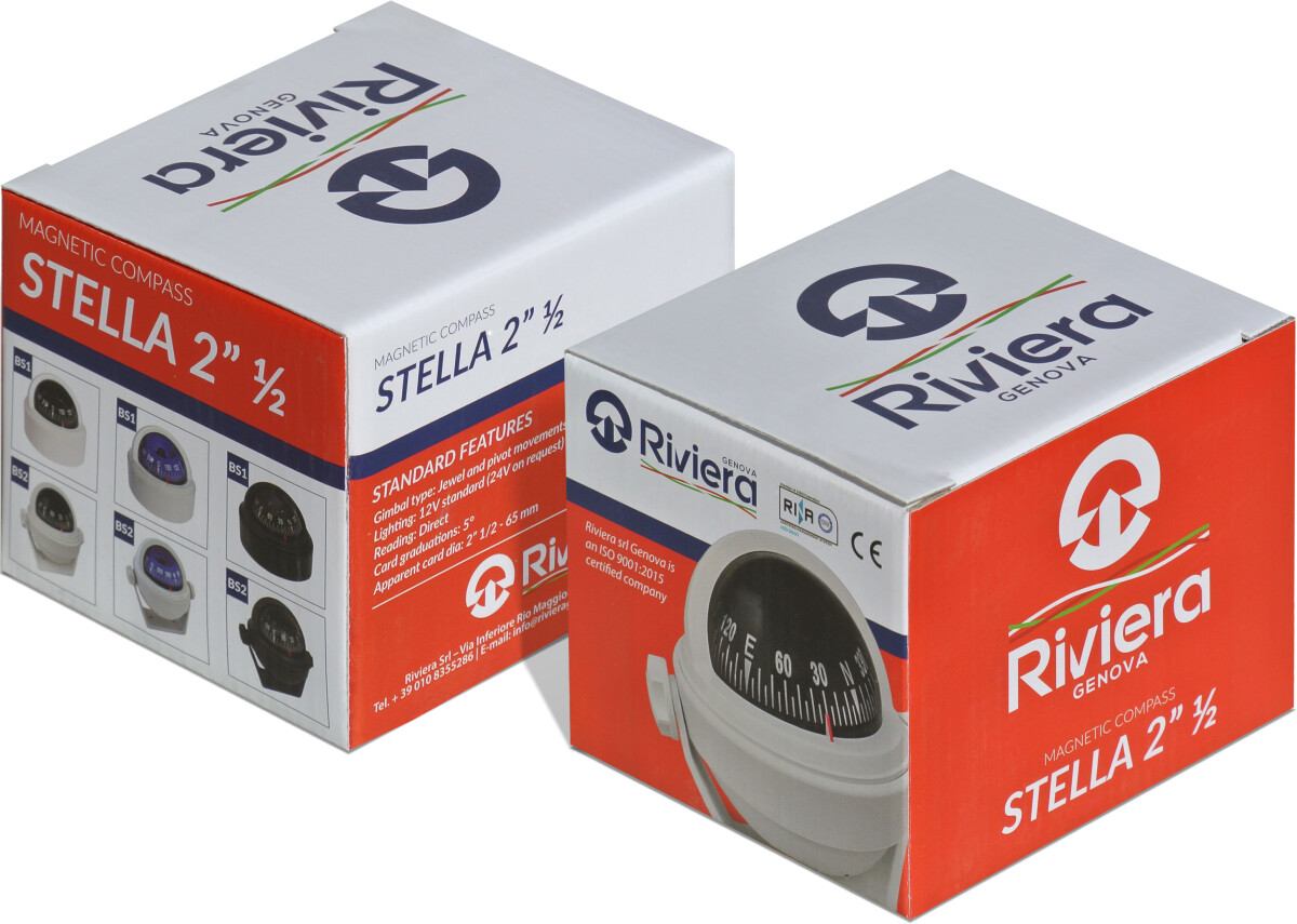 Riviera Stella BS1 er et kompakt kompass, som tar lite plass. Det er optimalt til mindre fritidsbåter som ferdes langs kysten. Det kommer med en minipidestall og monteres direkte på horisontale flater uten behov for innfelling.Riviera kompass er laget i Italia, og holder svært høy kvalitet.