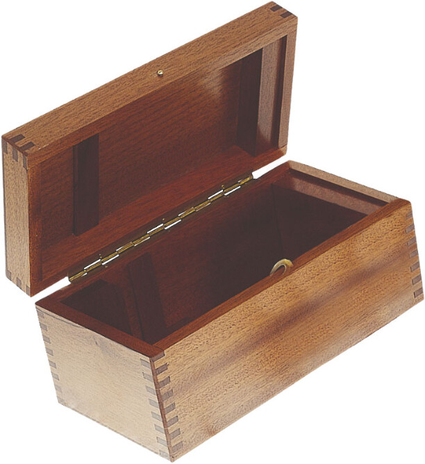 Lekker trekasse til oppbevaring og transport av Riviera Prizma peilekompass. Esken er pent utført med vakre fingerskjøter i hjørnene.