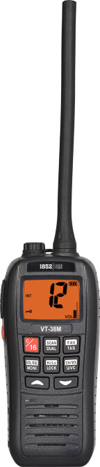 1852 VT-38M er kompakt, lett og samtidig kraftig VHF med 5 watts sendeeffekt. Den har autoscanningsfunksjon, og mulighet for overvåkning av tilleggskanaler.