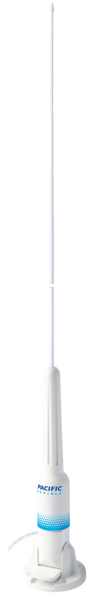 VHF-antenne med innebygd "hengsle" som gjør at denne antennen kan legges ned med et enkelt håndgrep.