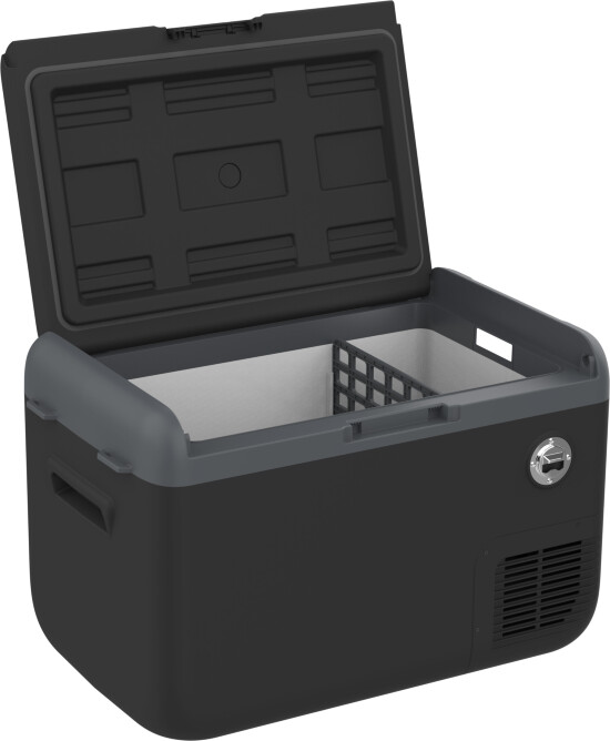 Icebergs innstegsmodell er en kraftig kjøle- og fryseboks som kan gi temperaturer helt ned til -20 °C. Lokket kan åpnes fra begge sider.