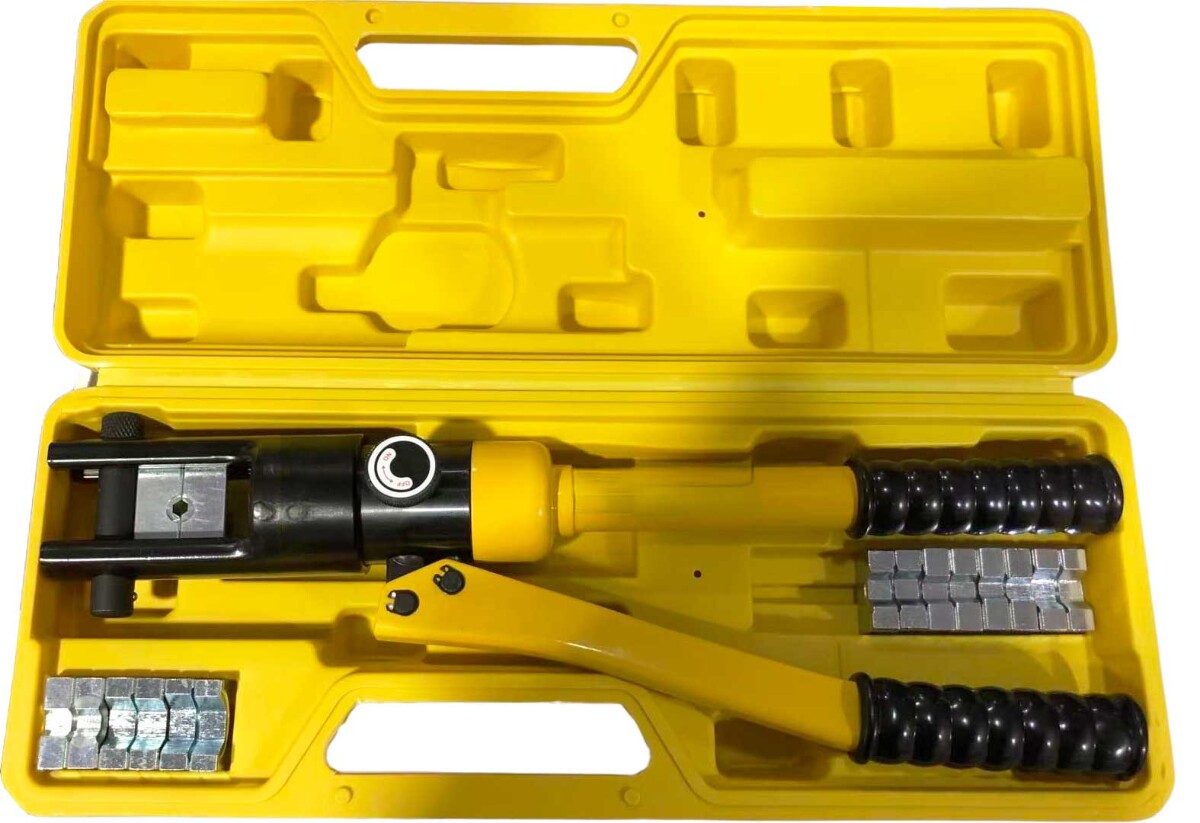 Hydraulisk presse for kabelsko og hylser. Pressen gjør at du enkelt kan presse selv de største presskabelskolene og hylsene. Den leveres i koffert, og kommer med adaptere for 10-120 mm².