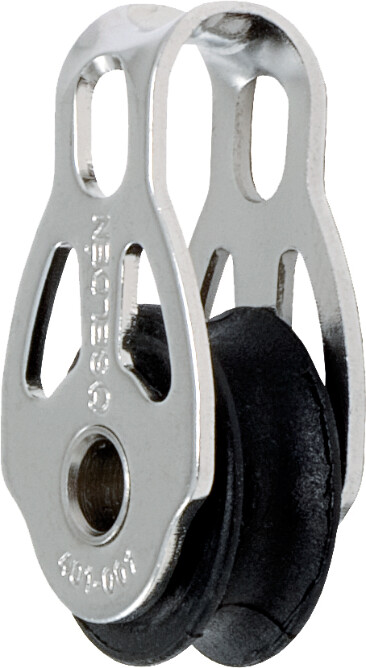 En liten, lett blokk for flaggliner, lazyjacks og lignende applikasjoner. Universalhode med bøyle passer både til tau, sjakler eller skruer for liggende montering.