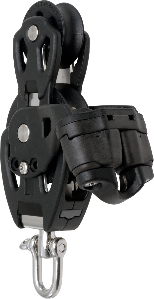 Seldén Plain Bearing Blocks (PBB) passer perfekt ved høy og statisk belastning. Skiver i Acetal med et syrefast bånd mellom skivens aksling og sjakkelhodet. Stive glassfiberforsterkede sider hindrer tauet i å kile seg fast. Svivelen kan låses i begge retninger uten bruk av verktøy.
