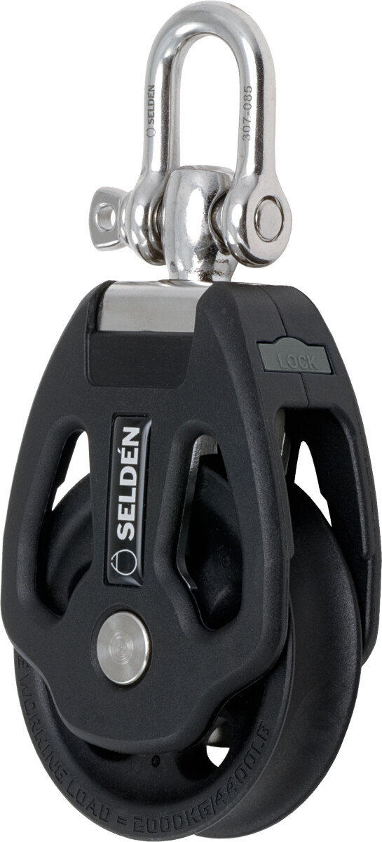 Seldén Plain Bearing Block er en høykvalitetsblokk med skive i acetal og sider i glassfiberforsterket kompositt. Den har svivel som kan låses uten bruk av verktøy.