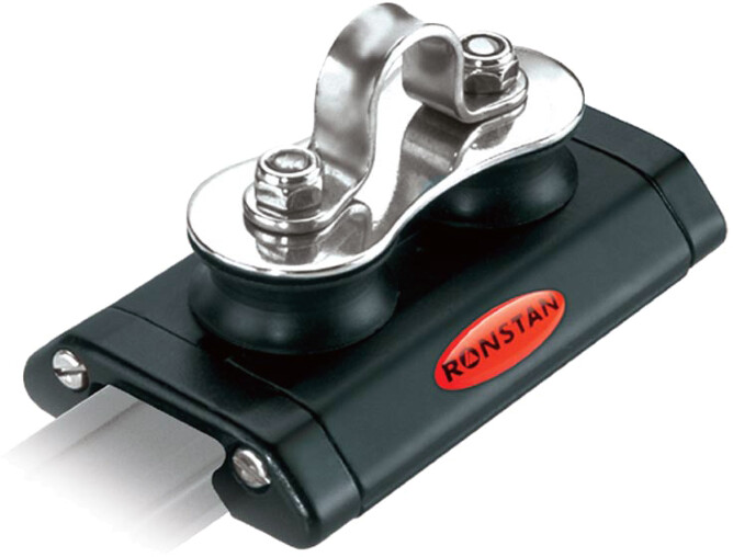 Ronstan kulelagrede vogner for løygangssystemer, uthalsløsninger og en rekke andre applikasjoner. Vognene har sjakkel for innfesting av blokk og 2 blokkskiver for justering.