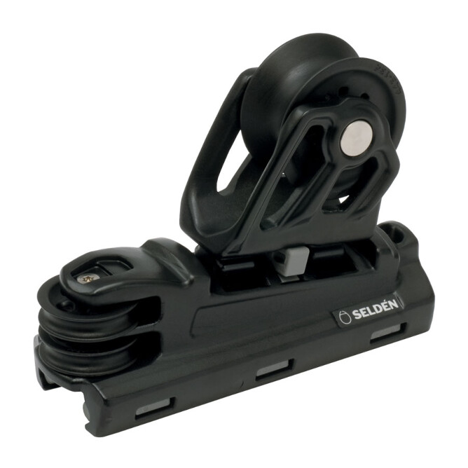 Ekstra kraftig genoavogn for 4:1 tauutveksling. Passer Seldén serie 30 skinner. 60 mm glidelagret skive.