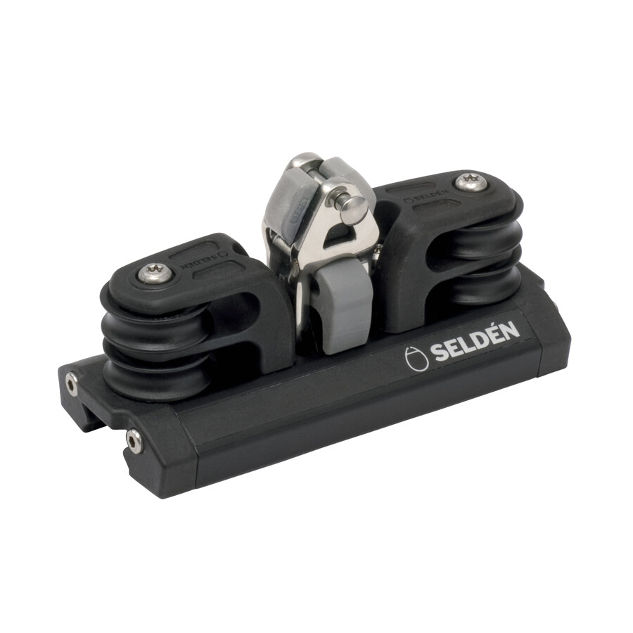 Seldén løygangsvogn med doble blokker for 4:1 utveksling. Acetal blokkhjul og Torlon kulelager. Leveres med integrert stand-up tilpasset Seldén blokker.