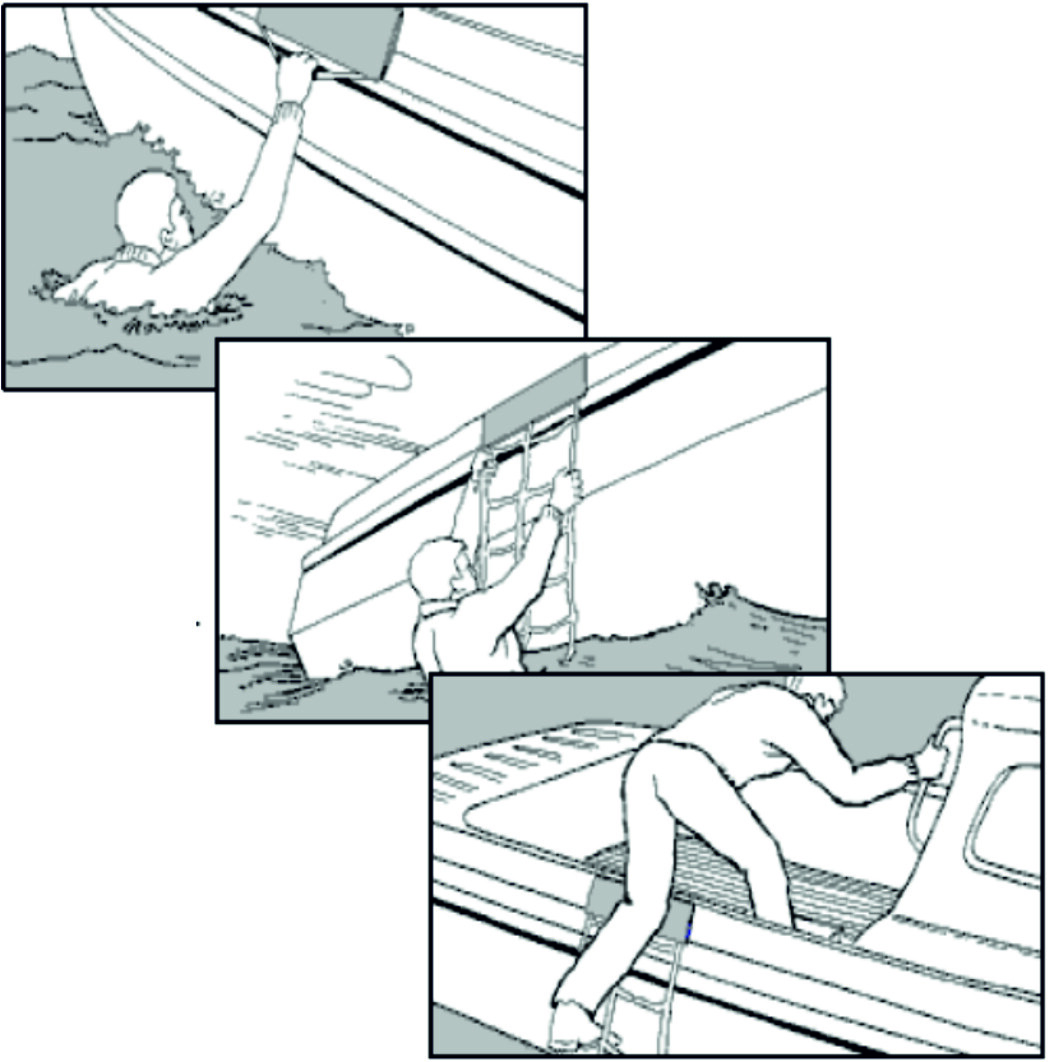 Stigen gjør det vesentlig enklere å komme om bord, om du har falt i vannet. Den kan enkelt åpnes og felles ut av en person som ligger i vannet.