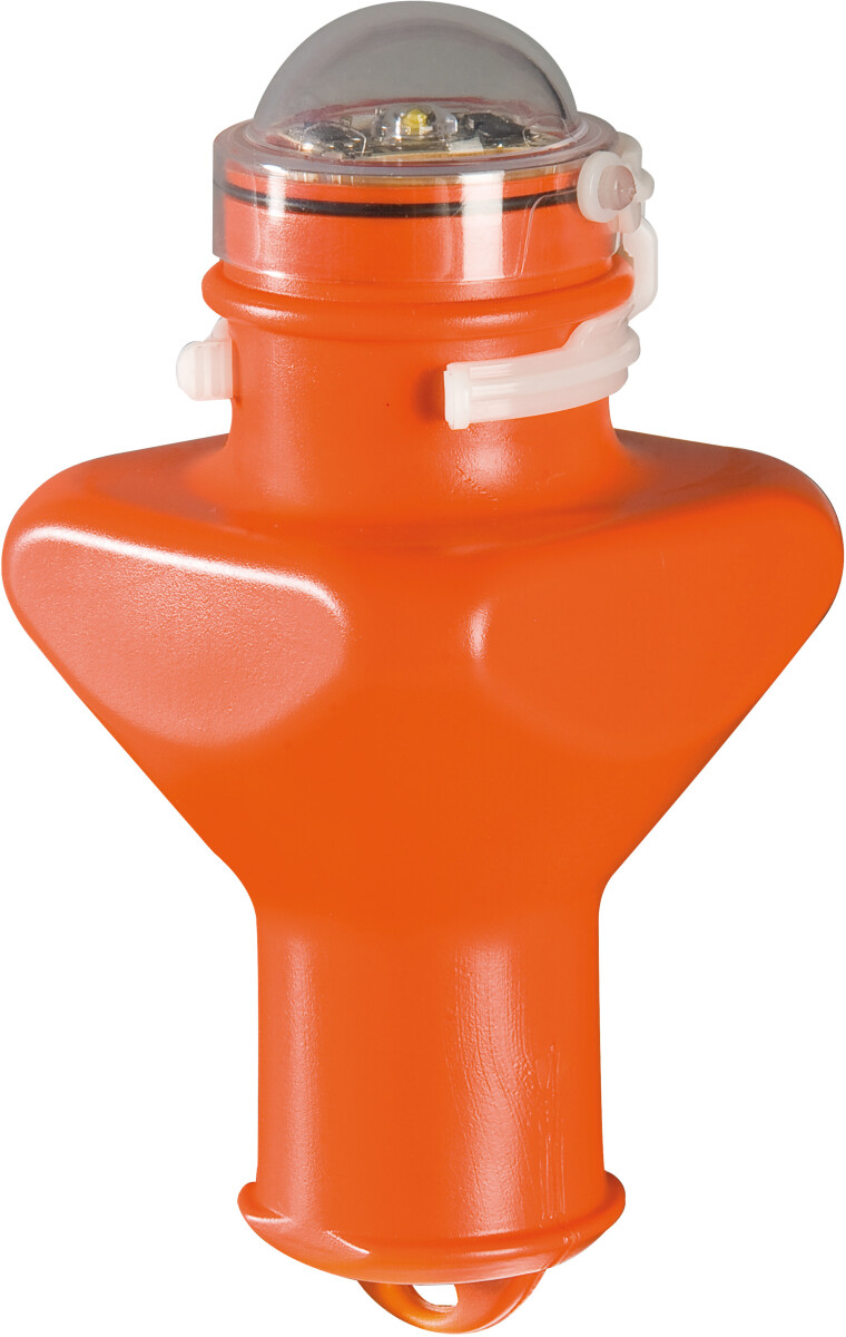 Flytende bøyelys Stella, med lett synlig LED-lys. Bruker ett D-batteri (medfølger ikke). Ca. 8 timer med 60 blinker i minuttet.
