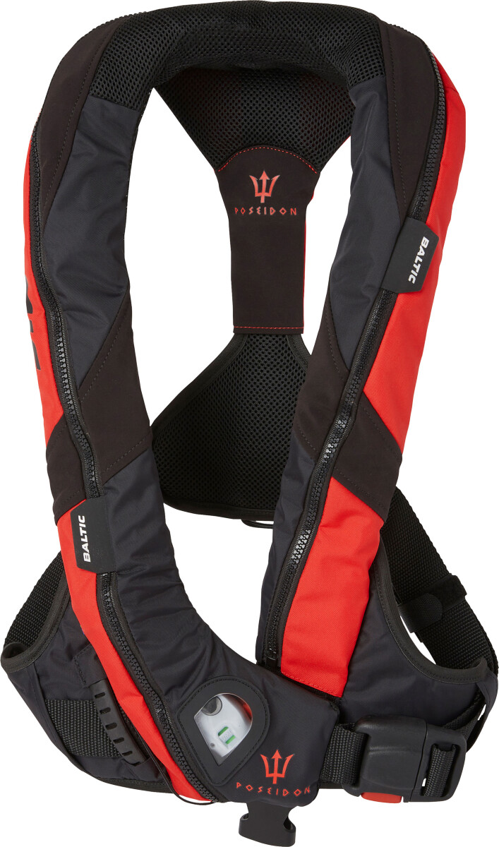 Baltic Poseidon er en oppblåsbar vest laget med ekstra fokus på passform og ergonomi. For å bedre passform og gi en slankere vest er automatikken plassert under bryst. I kombinasjon med gode justeringsmuligheter er dette en vest som gir en nett passform uansett kroppstype.