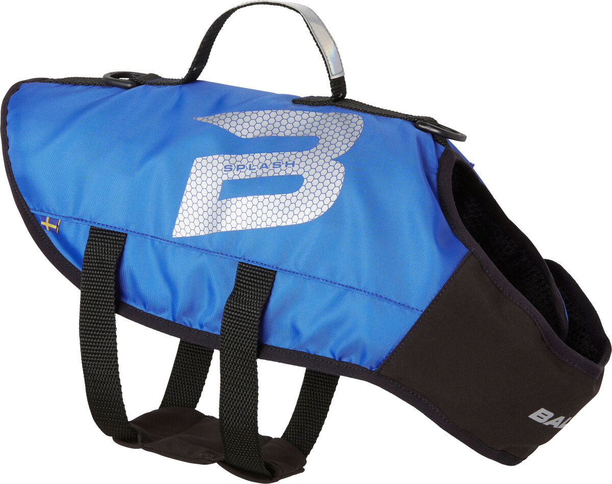 Baltic Splash er en ekstra forseggjort redningsvest til hund, som setter hundens komfort i høysetet. Den har pustende netting på innsiden, bredt brystbånd, og ekstra polstring på magen.Splash er også praktisk for deg som hundeeier. Den har et kraftig håndtak med refleks på toppen, samt feste for hundebånd. Hurtigspenner både på brystet og magen, gjør vesten enkel å ta av og på.