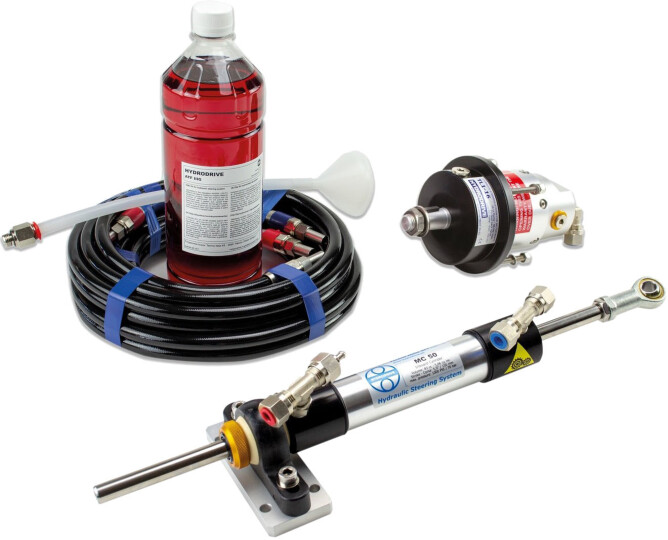 NordFlex hydraulisk styring for innenbordsmotor. Kompakt utførelse. For båter opptil 33 fot. Rattomdreininger: 4,5. Maks fart 35 knop.