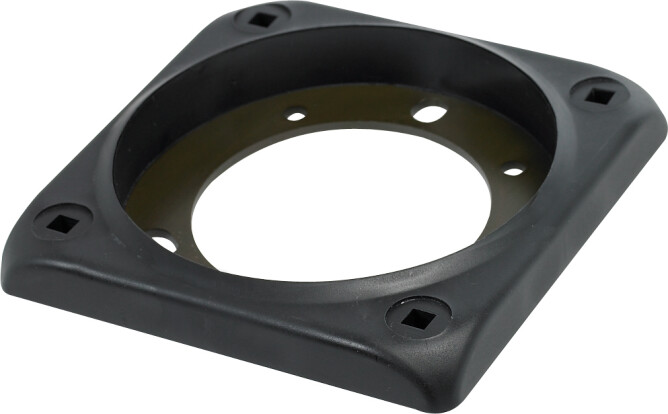 Monteringsflens for å installere frontmonterte rattpumper på dashbordet. Leveres i rund eller firkantet utgave. Mål: 13 x 13 cm.