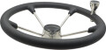 5-eket ratt laget i blankpolert syrefast stål. Rattet har softgrip ring for et godt og behagelig grep.