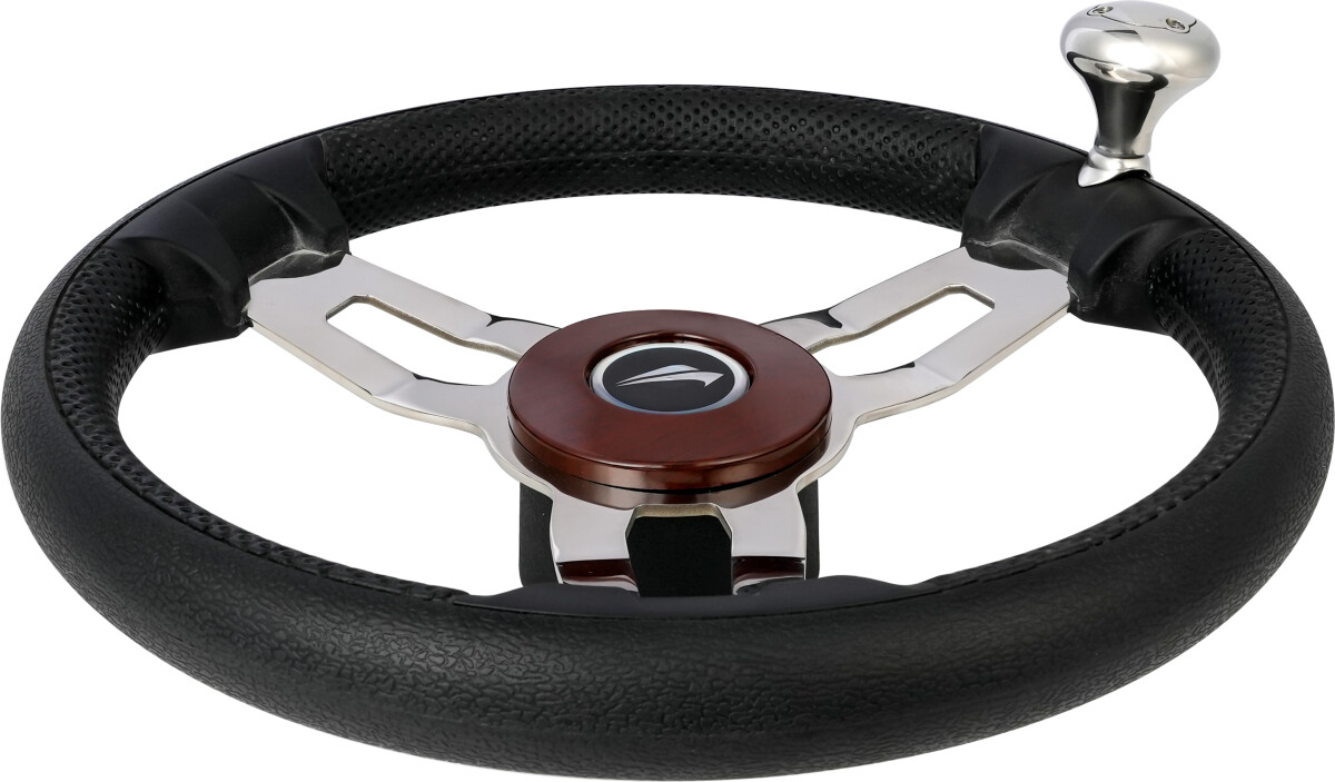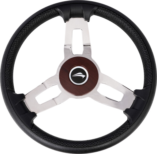 Pent 3-eket ratt med et sportslig preg. Rattet har softgrip ring, og eker i blankpolert stål. Det kommer med eller uten styrekule.
