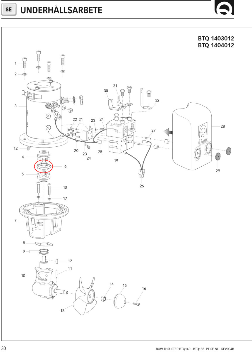 Elastisk kobling som brukes mellom girboks og motor på Quick BTQ 140 og 185 baugpropeller.