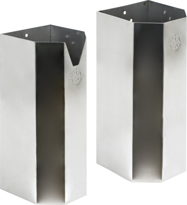 Holder for oppbevaring av forskjellige dregger. Høyglanspolert og laget i syrefast stål. Sammen med holderen følger det med rekkefeste for 25 mm rør.Prodnr. 1022525 og prodnr. 1022527 passer til paraplydregger, prodnr. 1022526, er en holder for M-anker og har spor i toppen.