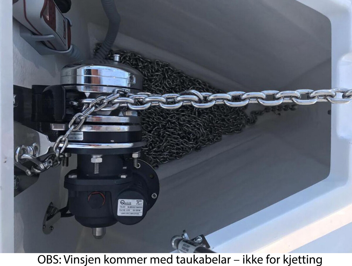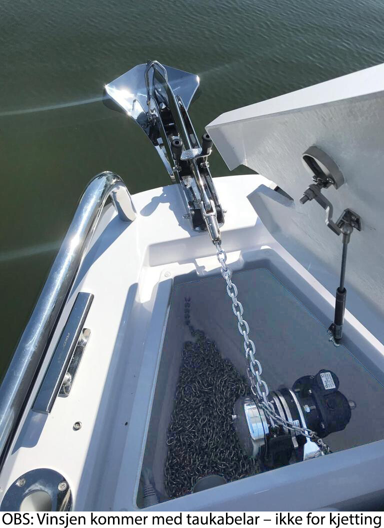 - Nødvendig tilbehør som bryter, kabler og ankerrulle medfølger ikke