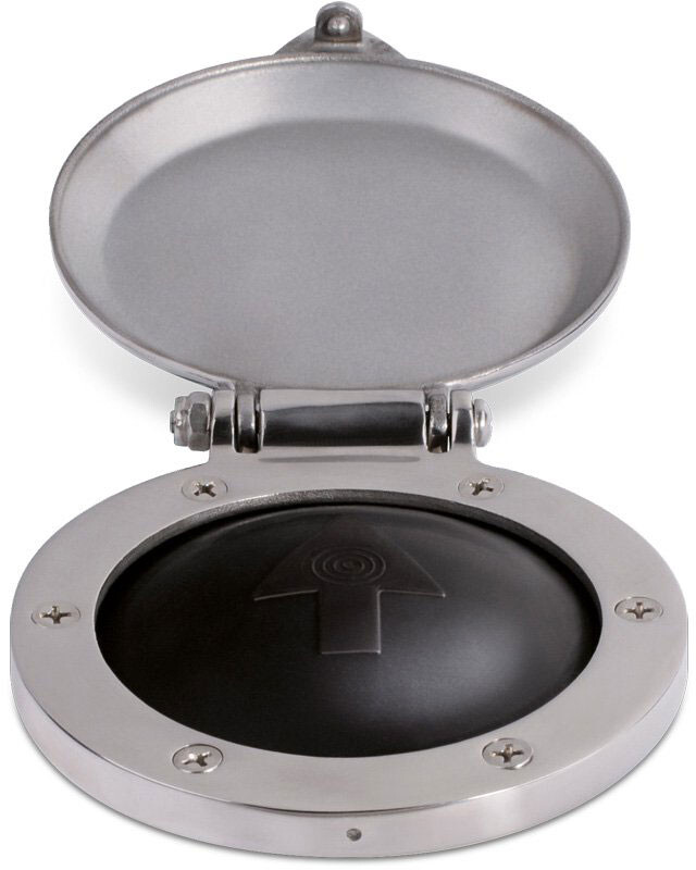 Fotbryter til Quick ankervinsjer. Bryteren har ring og deksel i syrefast stål, og er både solid og svært pen. Den kan vendes, og fungere enten oppover eller nedover.