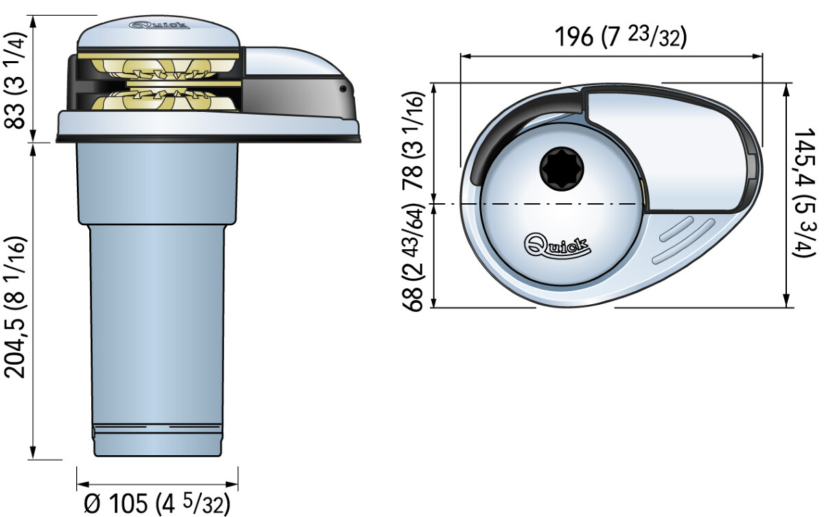 Quick Prince DP2E er en lekker ankervinsj for montering på dekk i baugen. Motoren plasseres under dekk, slik at kun toppdelen med kabelaret er synlig. Dette gir en lav profil som tar lite plass, og tar seg svært godt ut. Denne varianten har stående motor, som er praktisk når vinsjen skal monteres i trange rom.