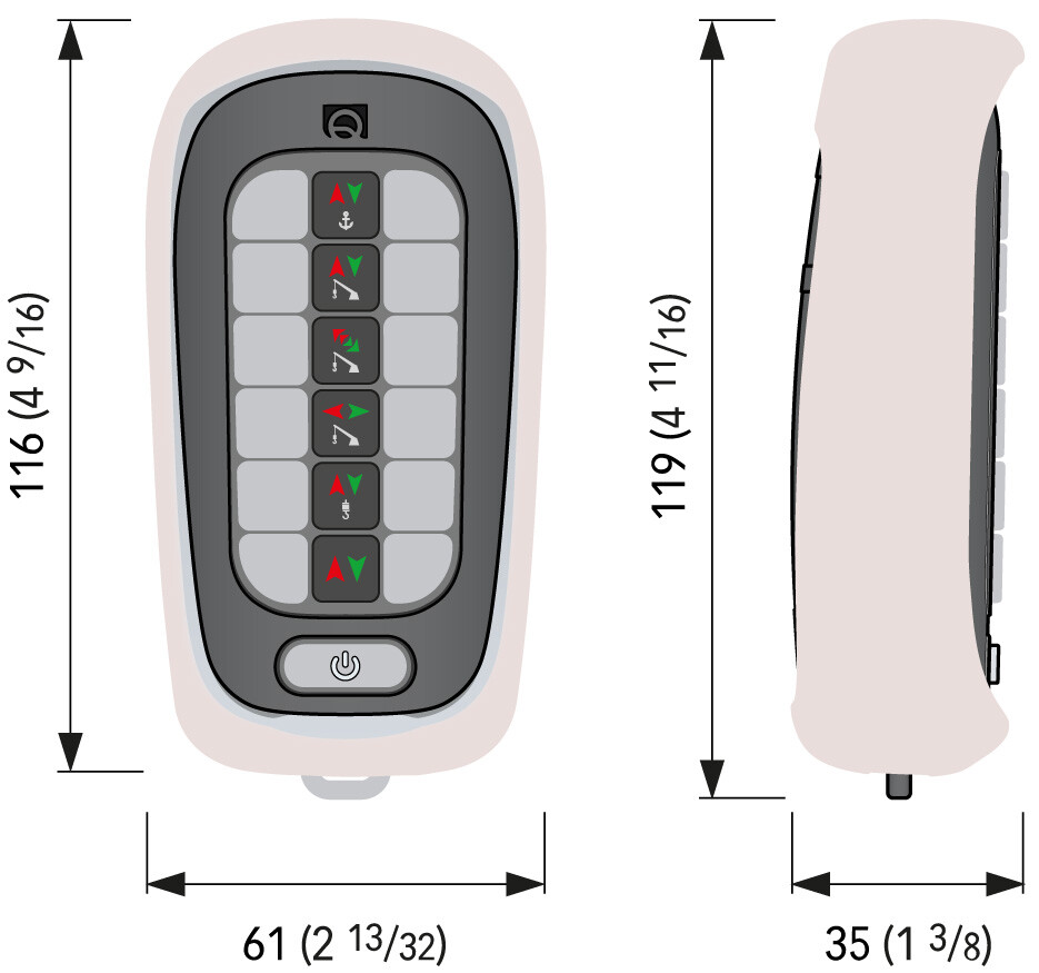 Radiokontroll for ankervinsj og truster. Leveres i 2-kanals versjon for ankervinsj, 4 kanals versjon for ankervinsj og baugtruster, eller 8 kanals versjon for -ankervinsj, baug- og hekktruster. I tillegg kommer den i 12-kanals utgave for deg som vil gi fjernkontrollen enda flere oppgaver. Med radiokontroll kan du styre ankervinsjen og trusteren fra hvor du vil i båten eller fra brygga. Dra båten ut fra land med ankervinsjen eller hjelp baugen inn til brygga ved fortøyning.