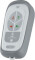 Bakgrunnsbelyste knapper gjør den lett å bruke i mørket. Den bruker standard alkaliske AAA batterier.