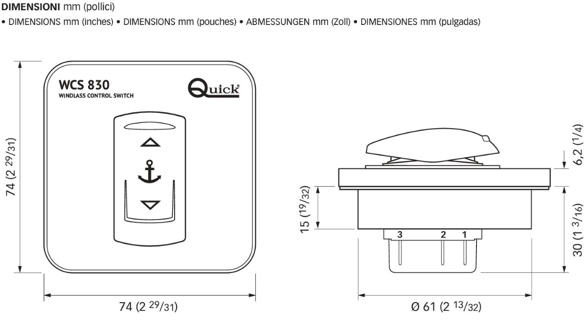 Quick WCS830 er et enkelt bryterpanel for styring av Quicks ankervinsjer. Den har en en klassisk bryter som lar deg føre vinsjen opp eller ned.