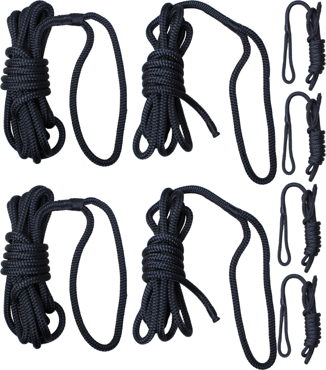 1852 Taupakke med 4 stykk fortøyningstau og 4 stykk fenderliner i god kvalitet. Både fortøyningstauene og fenderlinene har ferdig spleiset øye i den ene enden. Alle tauene er laget i flettet polyester. Pakken leveres i en praktisk nettingpose med god drenering og lufting.Farge: Marineblå