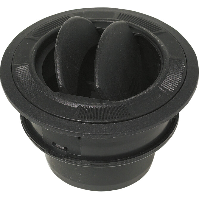 Luftuttak til varmluftssystemer. Dysene kan åpnes og lukkes med trinnløs regulering. Retningen på luftstrømmen kan justeres 360 grader.