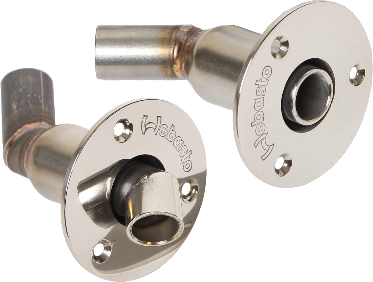 Eksosgjennomføring til Webasto Air Top Evo 40 og 55, samt Dual Top ST dieselvarmere. Gjennomføringen er laget i rustfritt stål, og holder høyeste kvalitet. Velg mellom vinklet eller rett utvendig stuss. Tetningspakninger og nødvendige festeskruer medfølger.