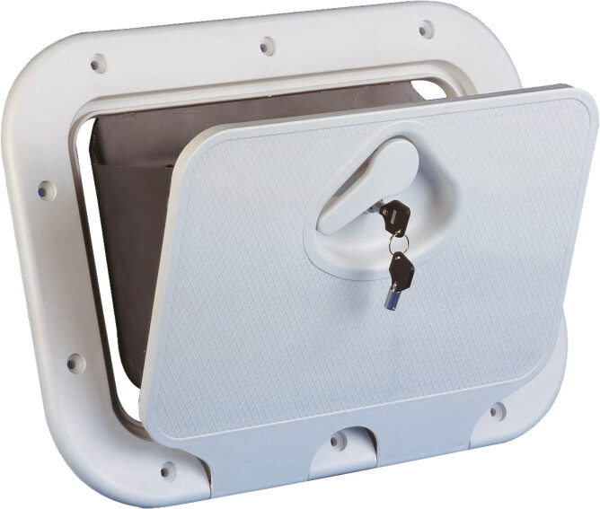Hanskerom 375 x 275 mm, m/lås, hvit