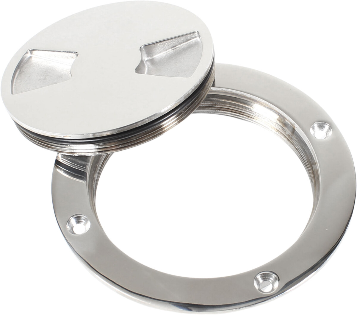 Vanntett inspeksjonsluke laget i blankpolert syrefast stål. Luken monteres med 4 forsenkningsskruer på opptil 6 mm.