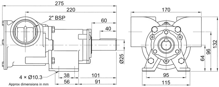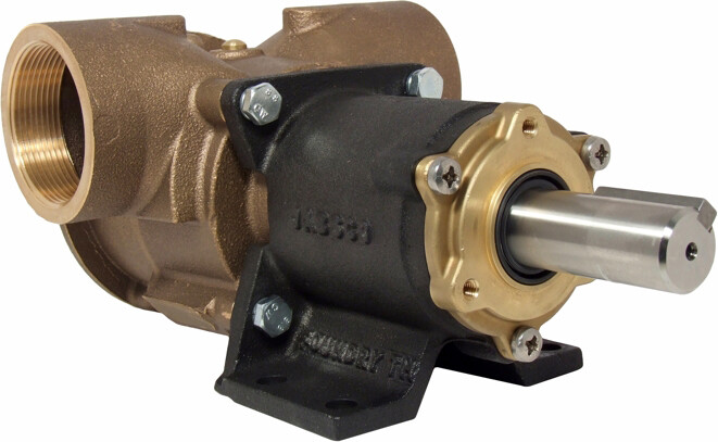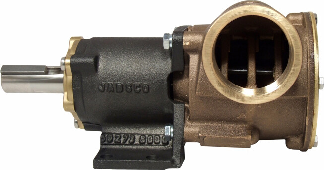 Høykvalitets impellerpumpe fra Jabsco. Pumpen er laget i bronse, og er fotmontert. Den har 2" BSP gjengeporter.