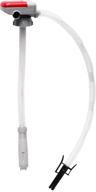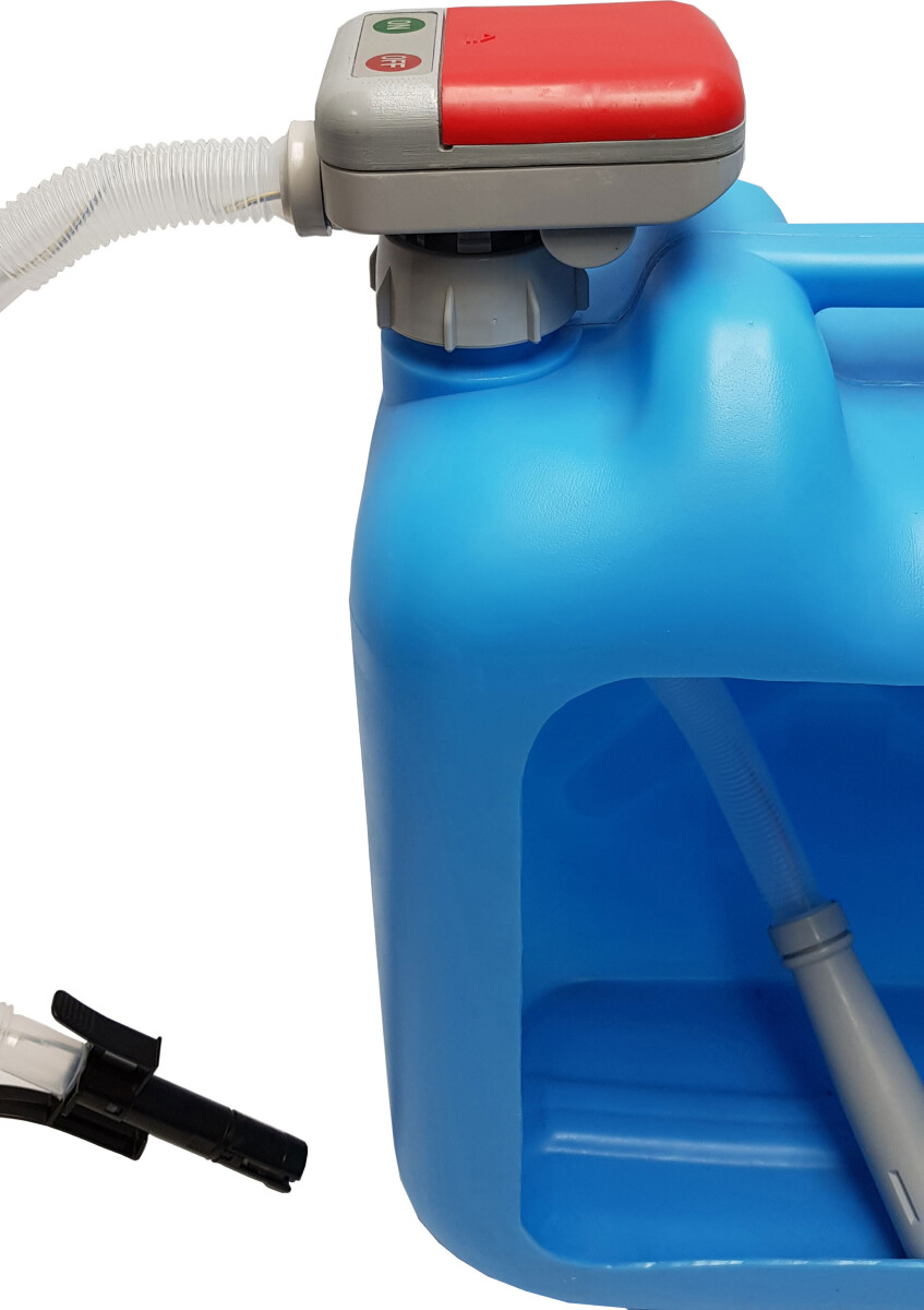 Batteridrevet pumpe med autostopp. Leveres med adaptere for montering på forskjellige kanneåpninger. Kan brukes på bensin, diesel, parafin, lette oljer (ikke motorolje) og vann. Pumper 9 liter pr min og bruker 4 stk AA batterier.