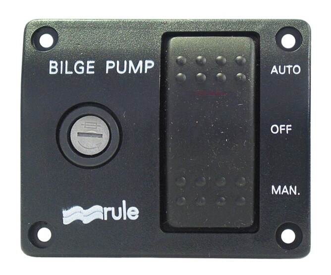 Automatisk lensepumpepanel med 3-veis bryter og fronttilgang til sikring. Brukes sammen med lenseautomatikk.