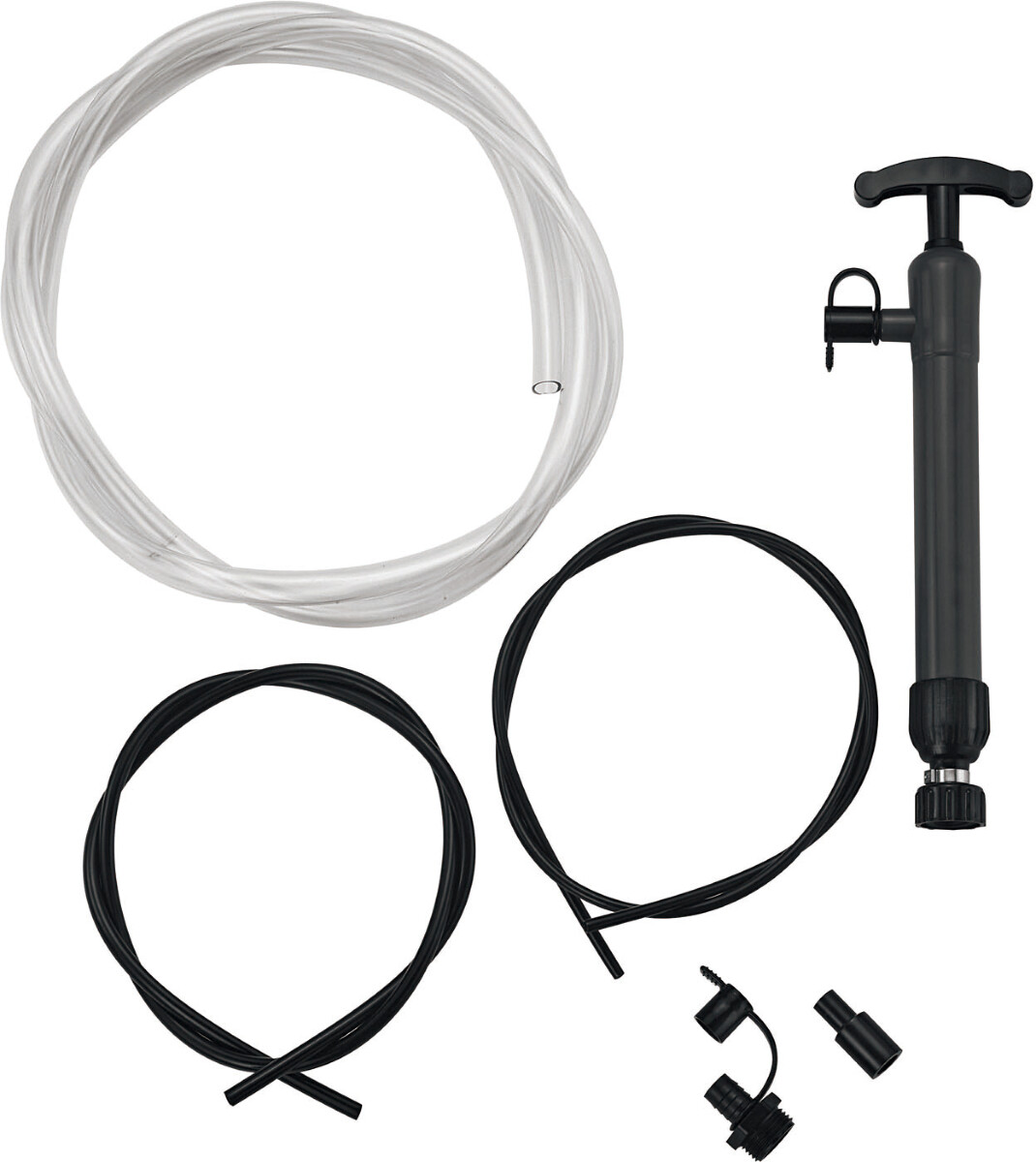 Håndpumpe med diverse slanger og koplinger som passer til det meste.