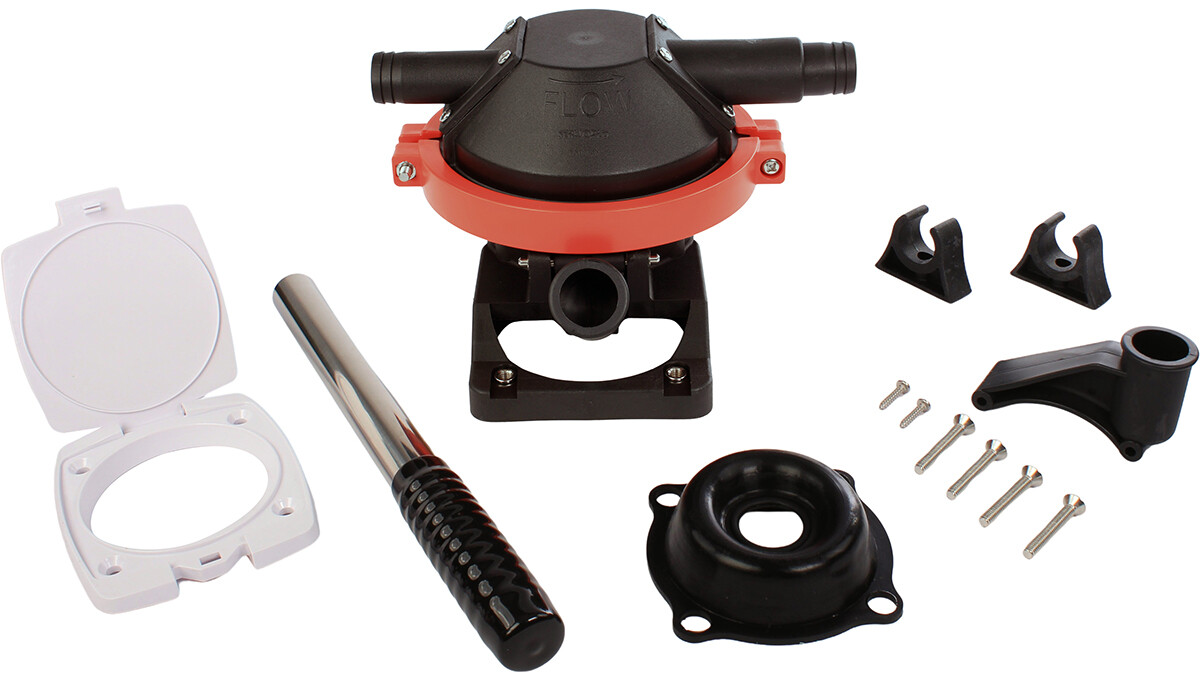 Lensepumpe for skjult montering. Med løst håndtak. Gjennomføring med lokk for 5-19 mm skottykkelse og klips til håndtak følger med.
