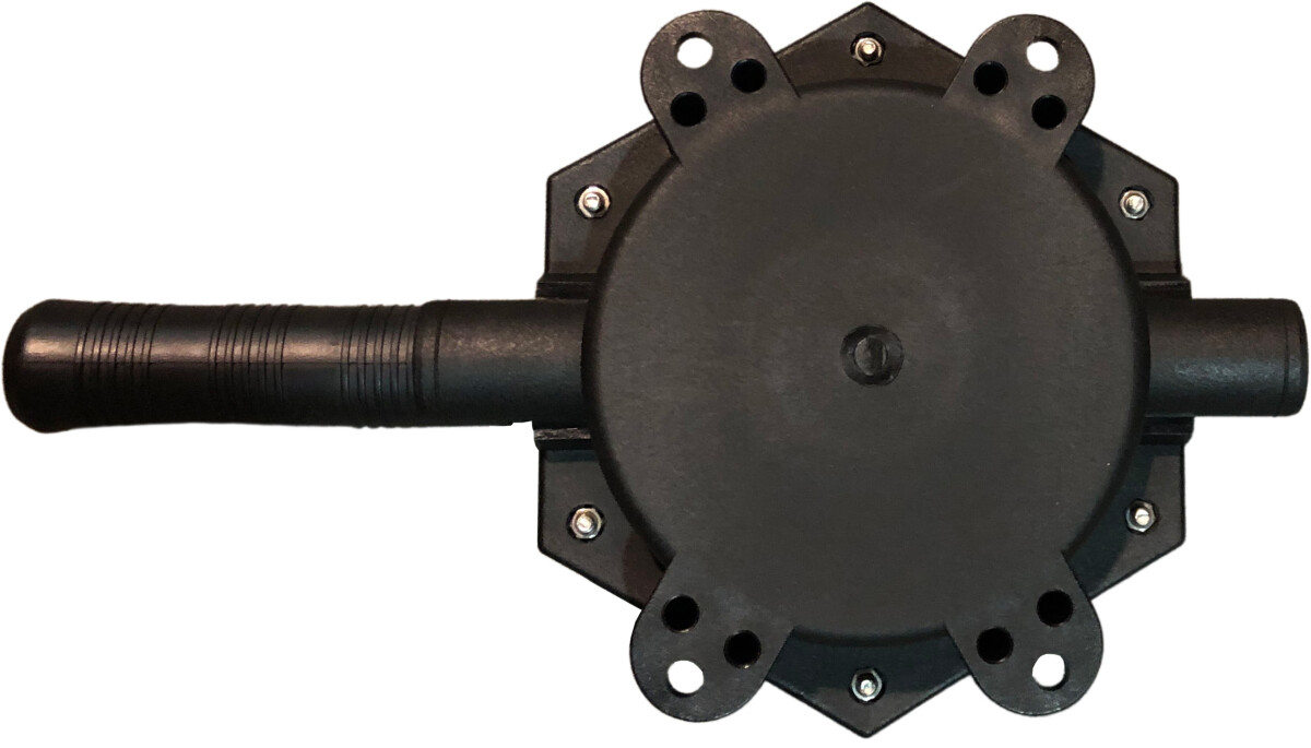 Lensepumpe med sekskantet pumpehus og fast håndtak.