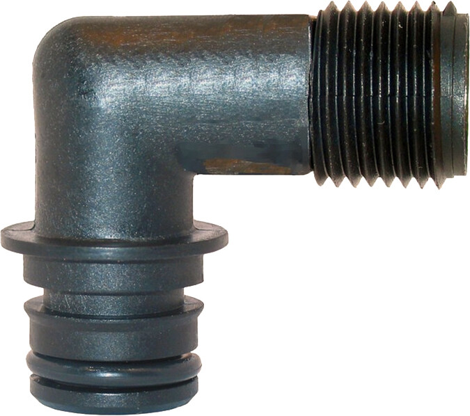 Albue med hurtigkopling og rørgjenger 1/2" (13 mm). Leveres komplett med o-ring.
