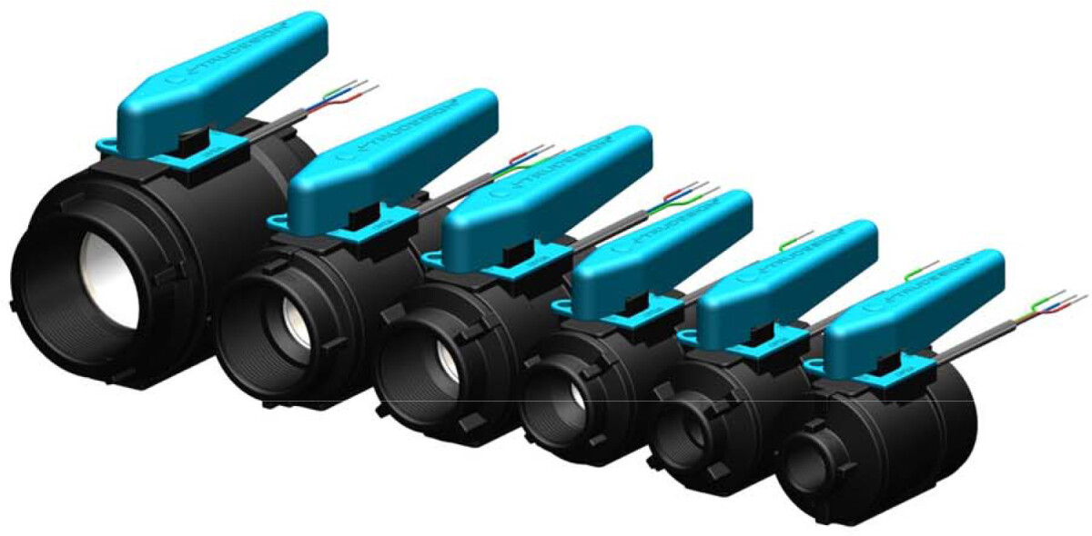 Kuleventiler med innebygget sensor. Sender signal til display og viser status, om den er åpen eller lukket.