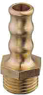 Slangekopling "han" med utvendige rørgjenger og slangestuss. Laget i messing.